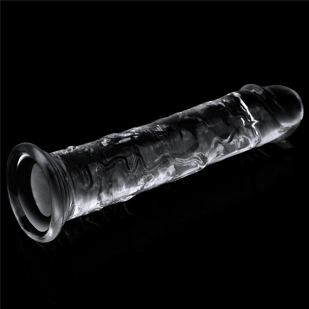 Yükseltilmiş bir kafa, dokulu damarlar gibi gerçeğe yakın detaylarıyla bu transparan dildoya bayılacaksınız.