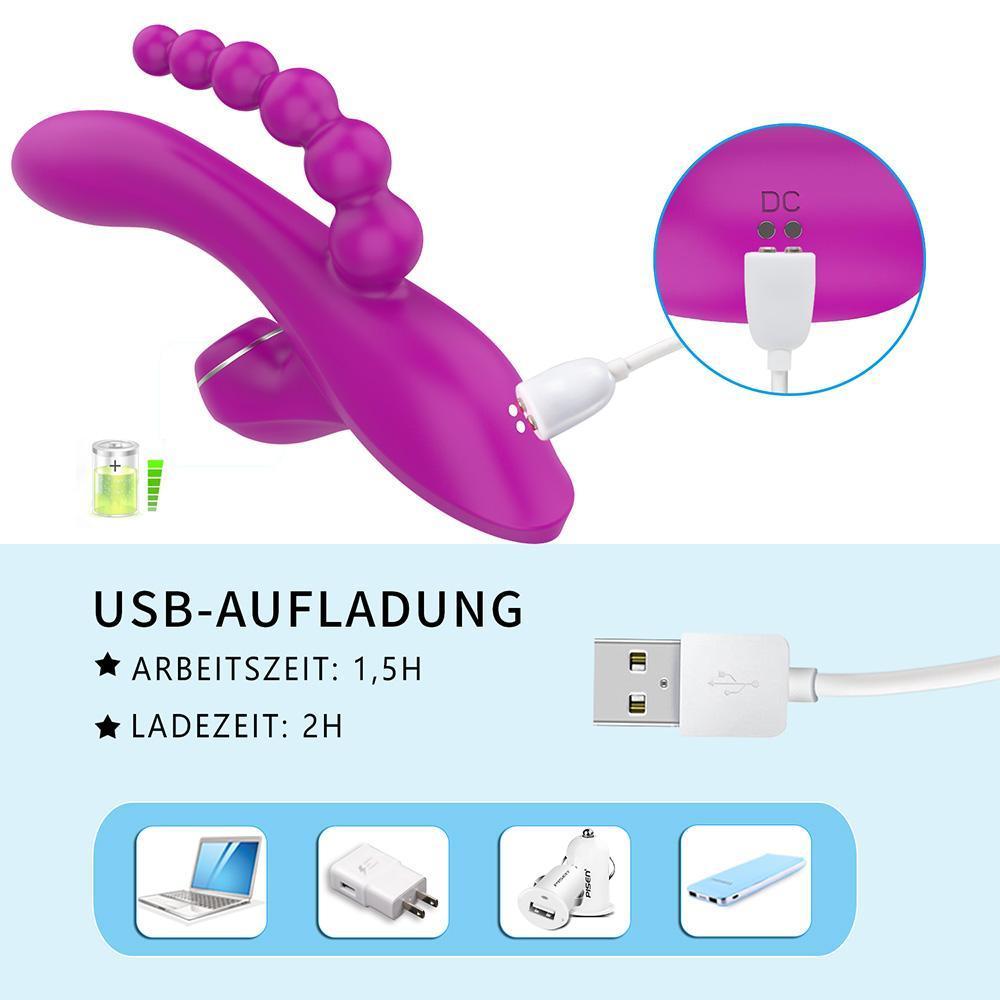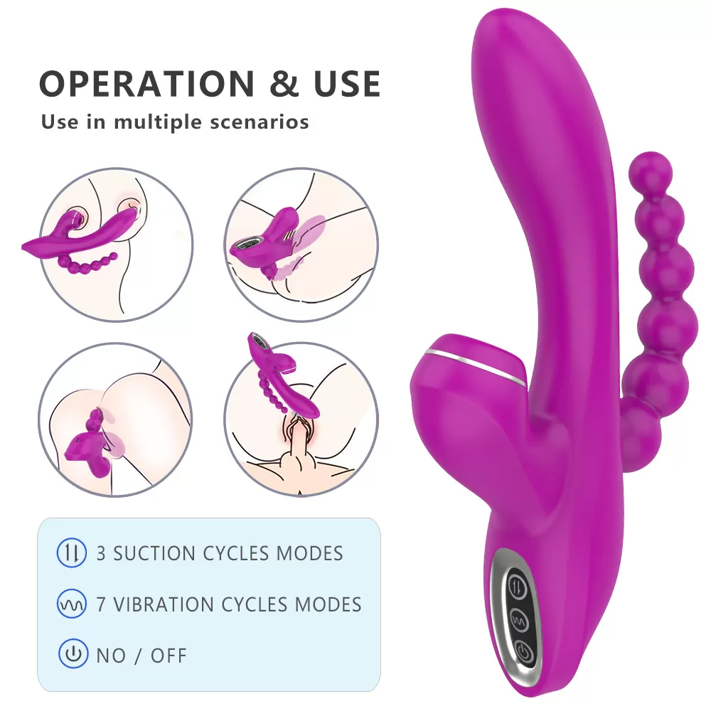 ABEL Şarjlı Anal Boncuklu Emiş Güçlü 3 in 1 G Spot Üçlü Vibratör - Mor
