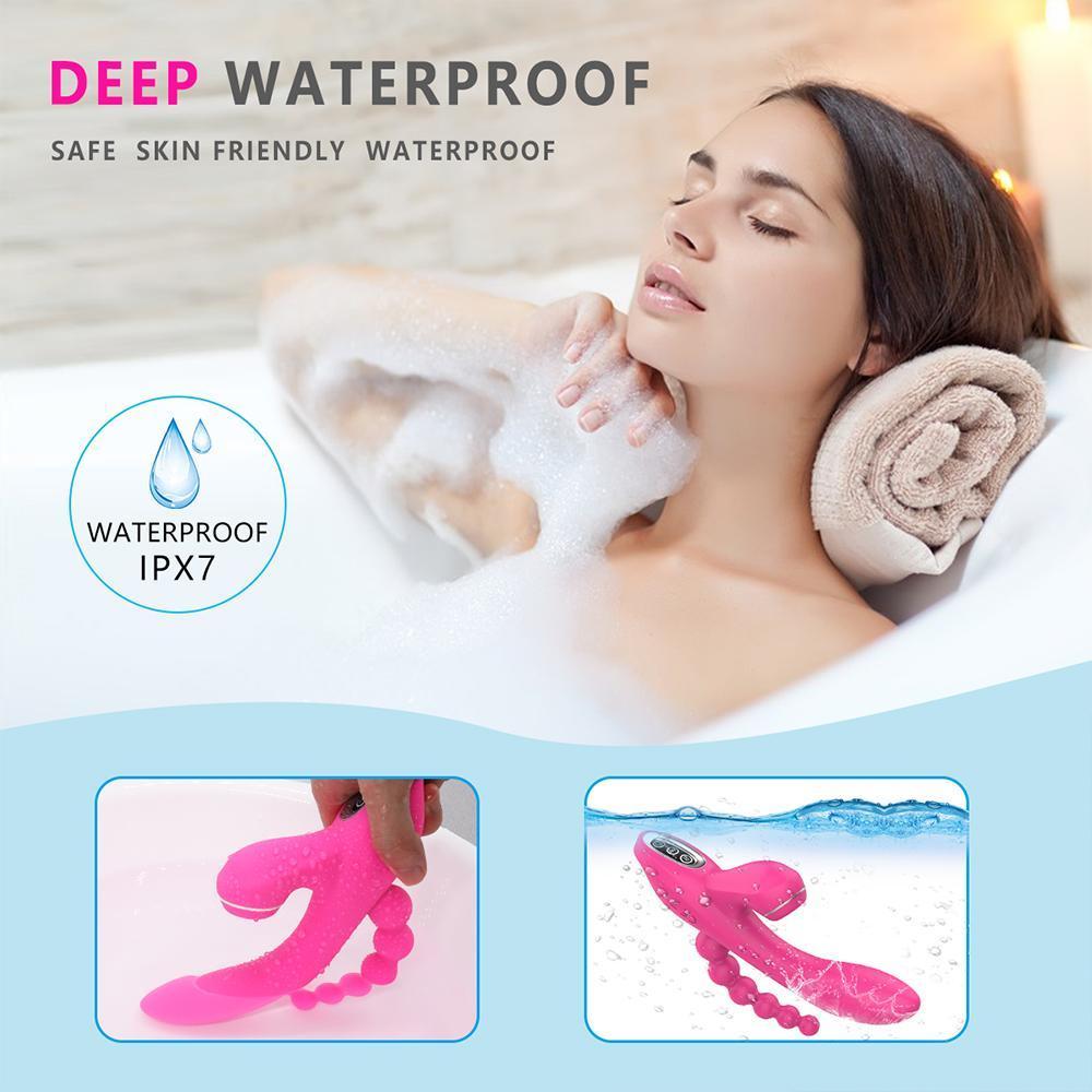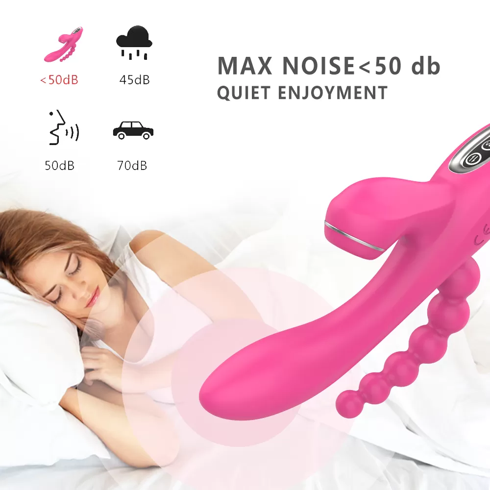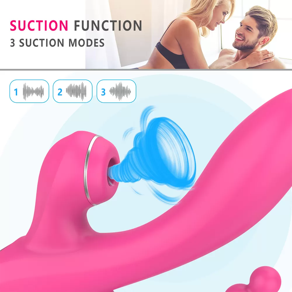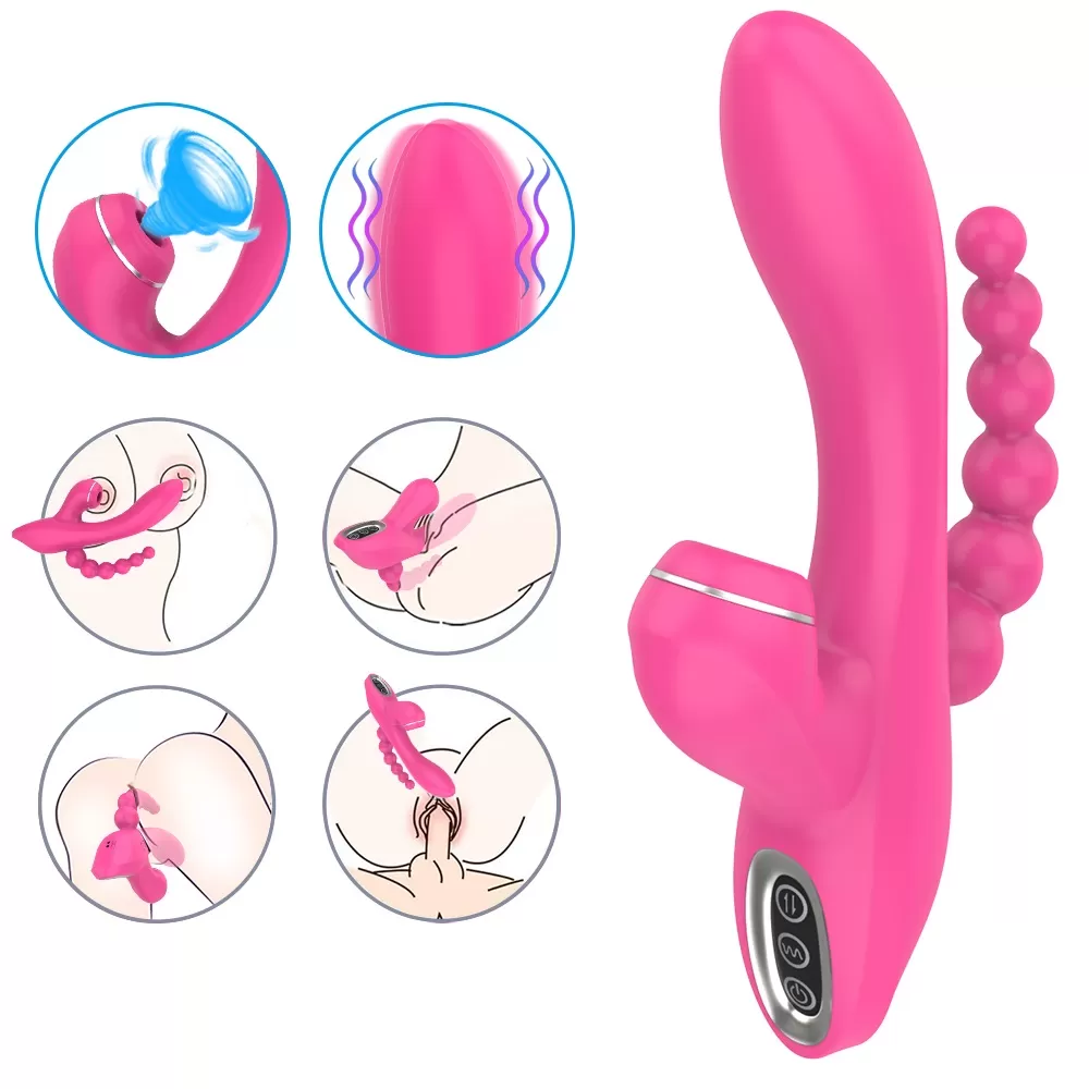 ABEL Şarjlı Anal Boncuklu Emiş Güçlü 3 in 1 G Spot Üçlü Vibratör - Pembe
