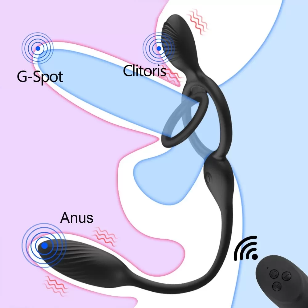 ANOS 3 Kumandalı Klitoris ve Prostat Uyarıcı Testis ve Penis Halkalı Anal Vibratör