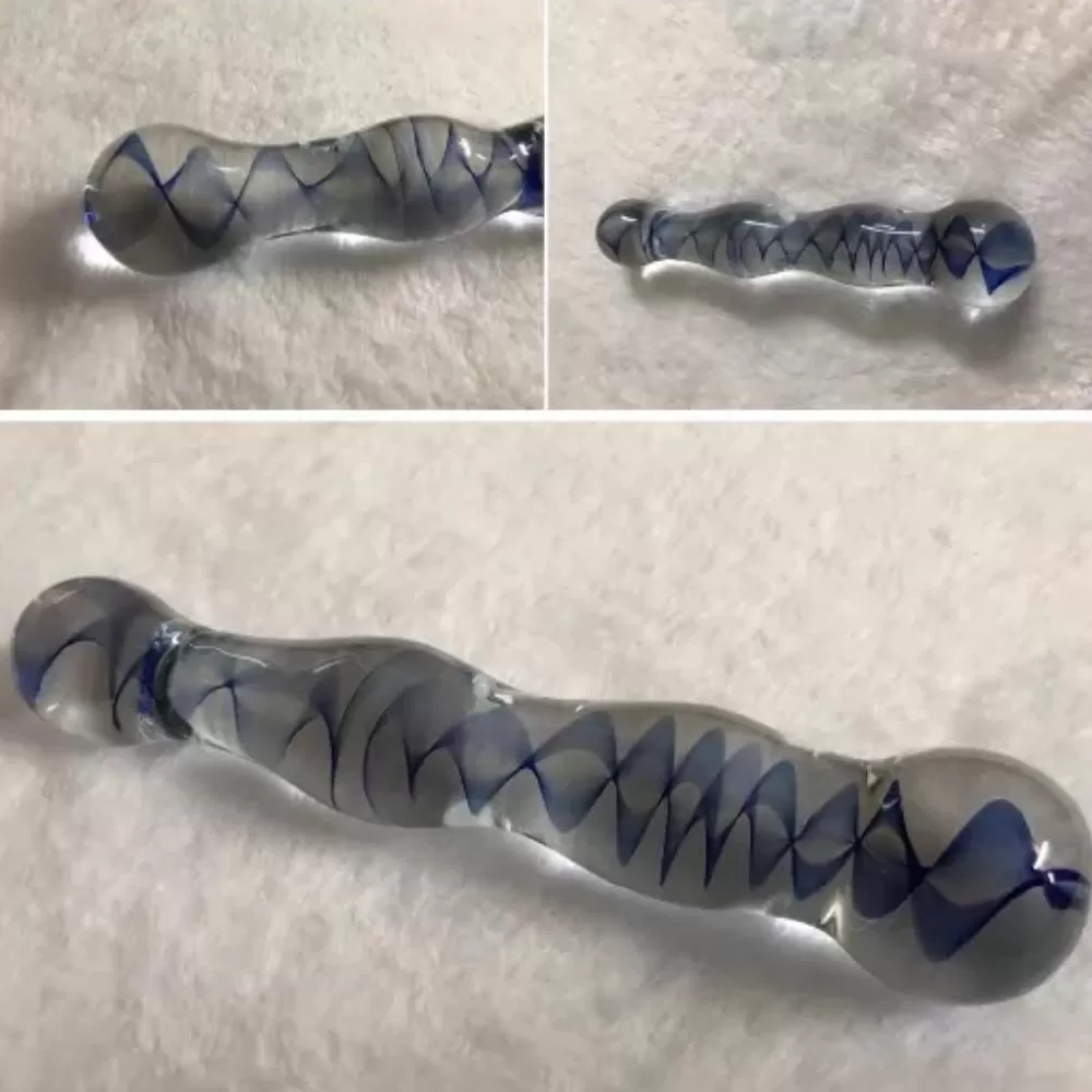 CRYSTAL CLEAR Kristal Cam Uzun Anal Plug Dildo - Mavi
