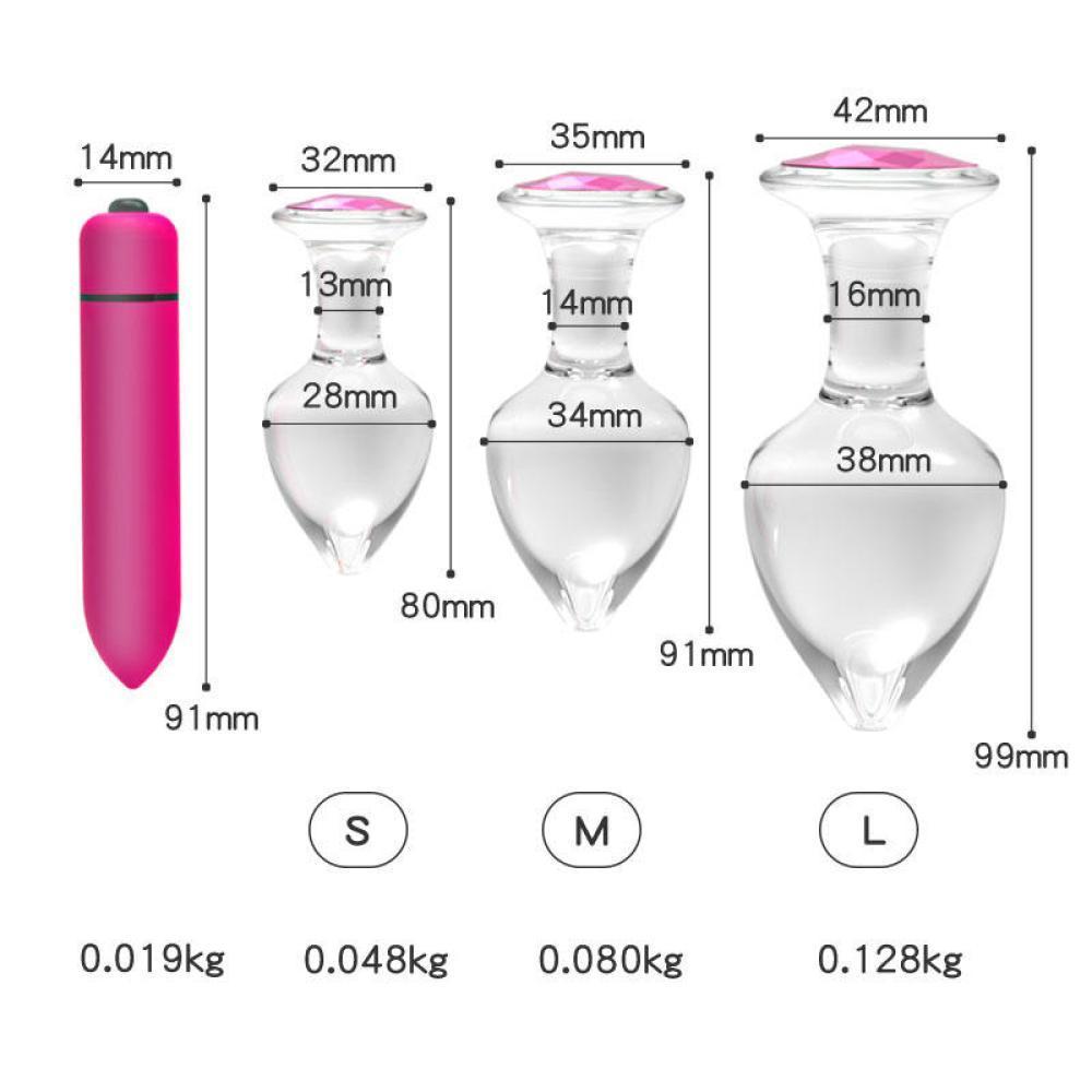 CRYSTAL CLEAR Titreşimli Pembe Mücevher Taşlı Kristal Cam Anal Plug Set