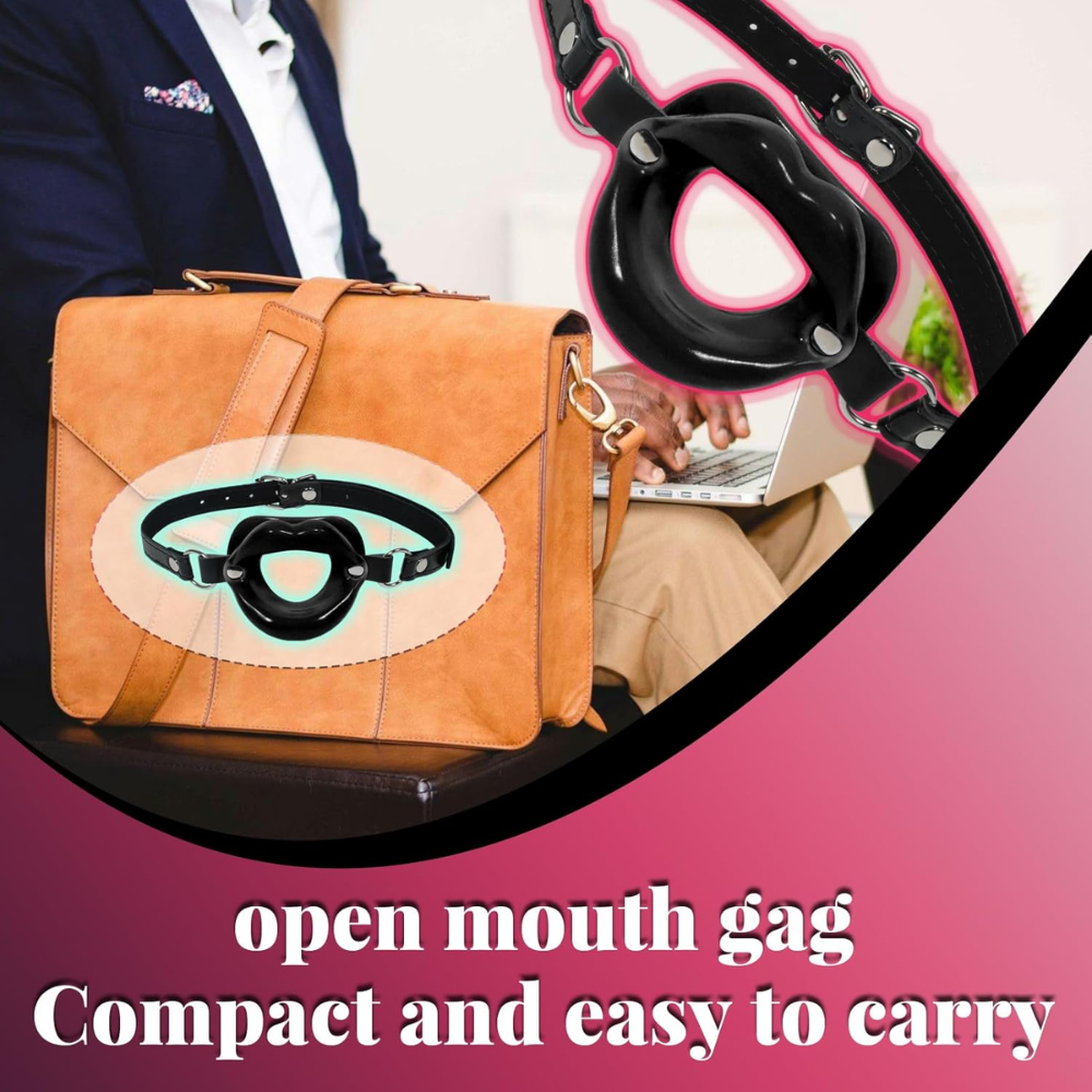 Deri Kemerli Siyah Yumuşak Silikon Dudak Esnek Esaret Ağız Tıkacı - Red Open Mouth Lip Gag