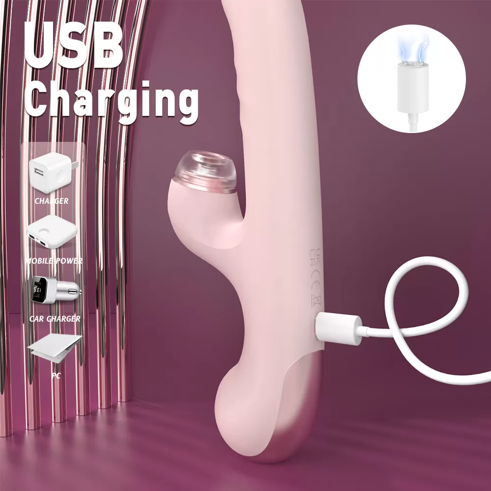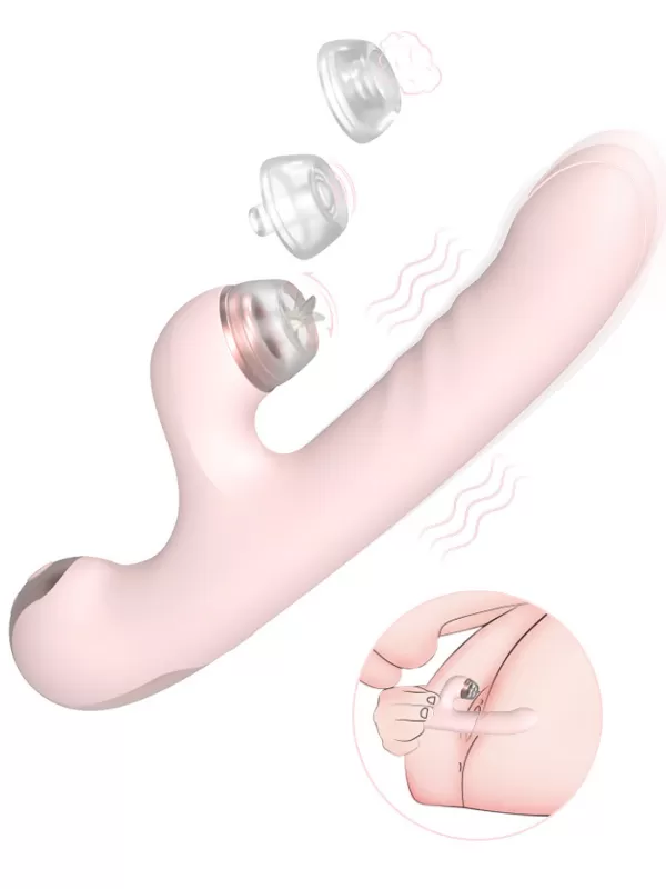 DJ Sona Şarjlı İleri Geri Hareketli ve Değiştirilebilir Başlıklı Klitoris Emiş 2 in 1 Rabbit Vibratör