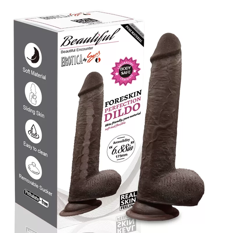 Foreskin Perfection Dildo 22.5 CM - Çift Katmanlı Gerçekçi Kayar Deri Ultra Yumuşak Realistik Zenci Yapay Penis Vibrator