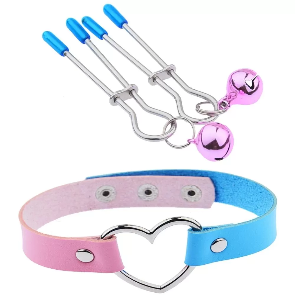 Choker, Klips ve Kulak Seti: Bu setin şıklığı, pembe ve mavi renklerin etkileyici uyumuyla başlar. Cazibeli bir kedi kulak tasarımına sahip kulaklar, vücudunuza zarifçe otururken, choker yaka ise boynunuzda dikkat çekici bir zarafet yaratır. Klipsler sayesinde göğüs uçları uyarılır, böylece zarif bir görüntü verirken aynı zamanda benzersiz haz deneyimi kazanabilirsiniz.