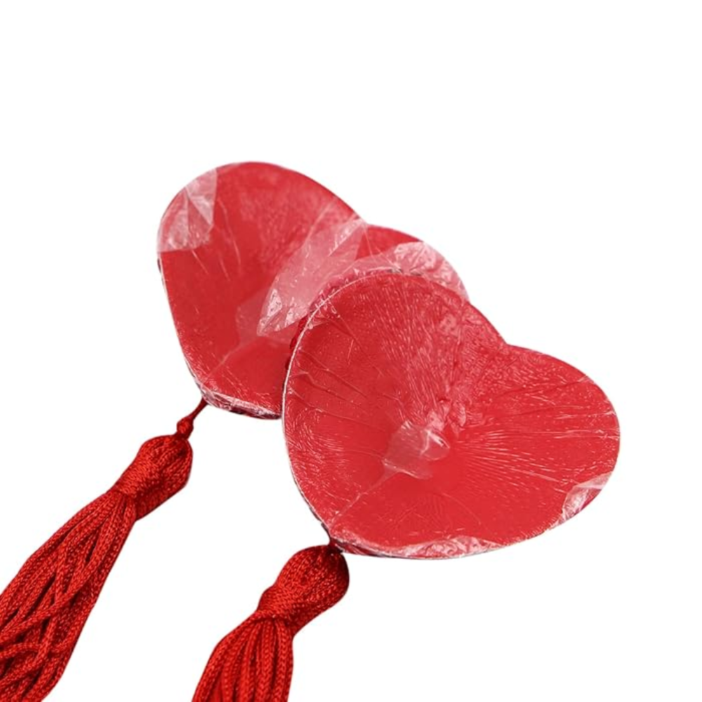 Gıdıklayıcı Püsküllü Yapışkanlı Kırmızı Parıltılı Kalp Şeklinde Meme Ucu Gizleyici Göğüs Aksesuarı
