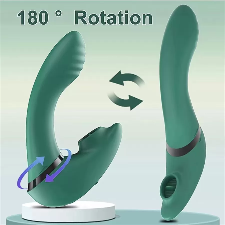 Şarjlı Açısı Ayarlanabilen Dil Hareketli Güçlü Titreşimli Klitoris G Nokta Uyarıcı 2 in 1 Vibratör