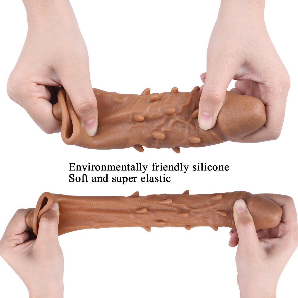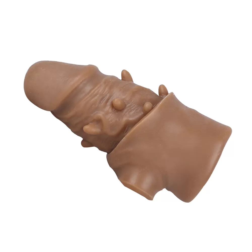 Gerçekçi ten dokusunda uzatmalı penis kılıfı LUFI, liquid silicone malzemeden üretilmiştir.