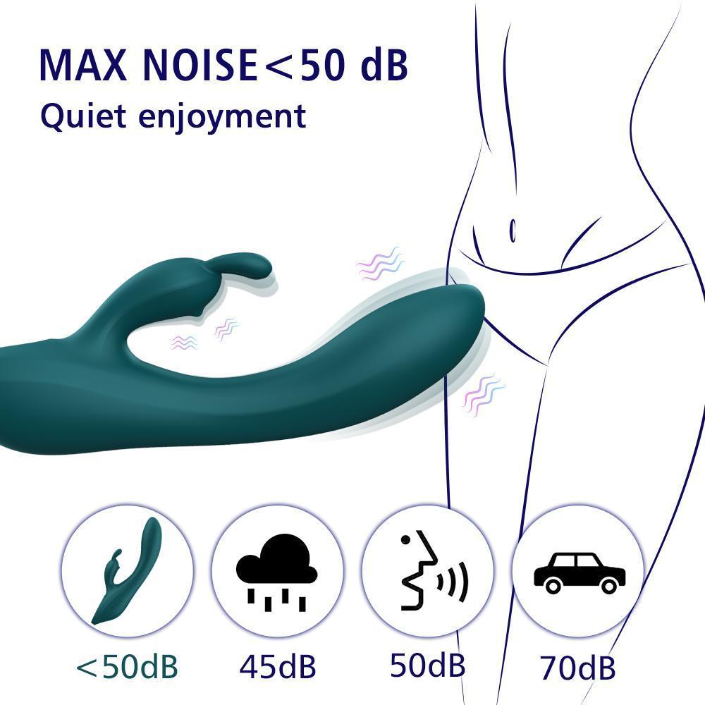 İkili tavşan vibratörümüz, ergonomik denetleyiciyi kullanarak 12 titreşim deseninden geçer.