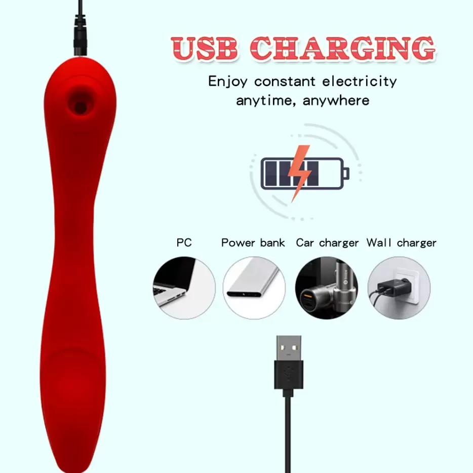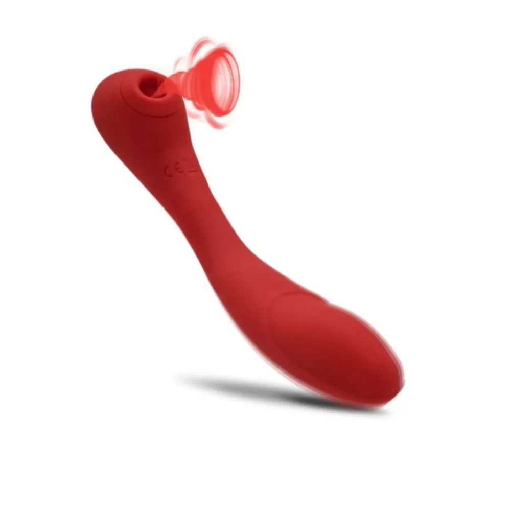 MILRA Şarjlı G-Spot Uyarıcı ve Klitoris Emiş Güçlü Kıkırdaklı Bükülebilir Vibratör - Kırmızı