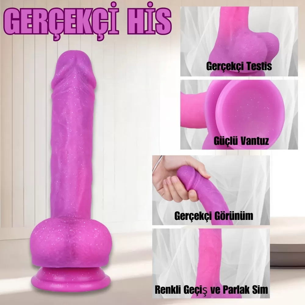 MYST COLOR Dildo Parlak Simli Ultra Yumuşak Pembe Realistik Yapay Penis