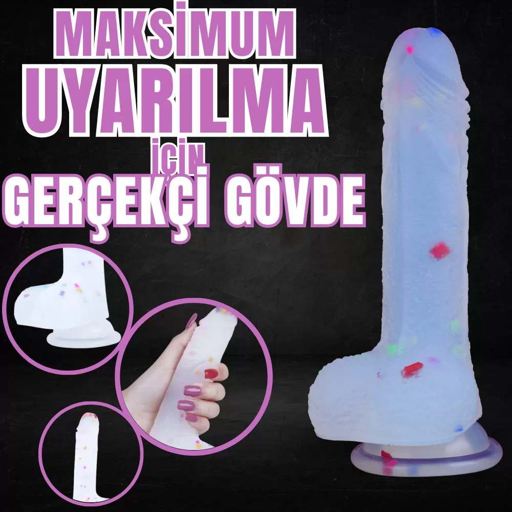 MYST COLOR Dildo Renkli Benekli Ultra Yumuşak Şeffaf Realistik Yapay Penis