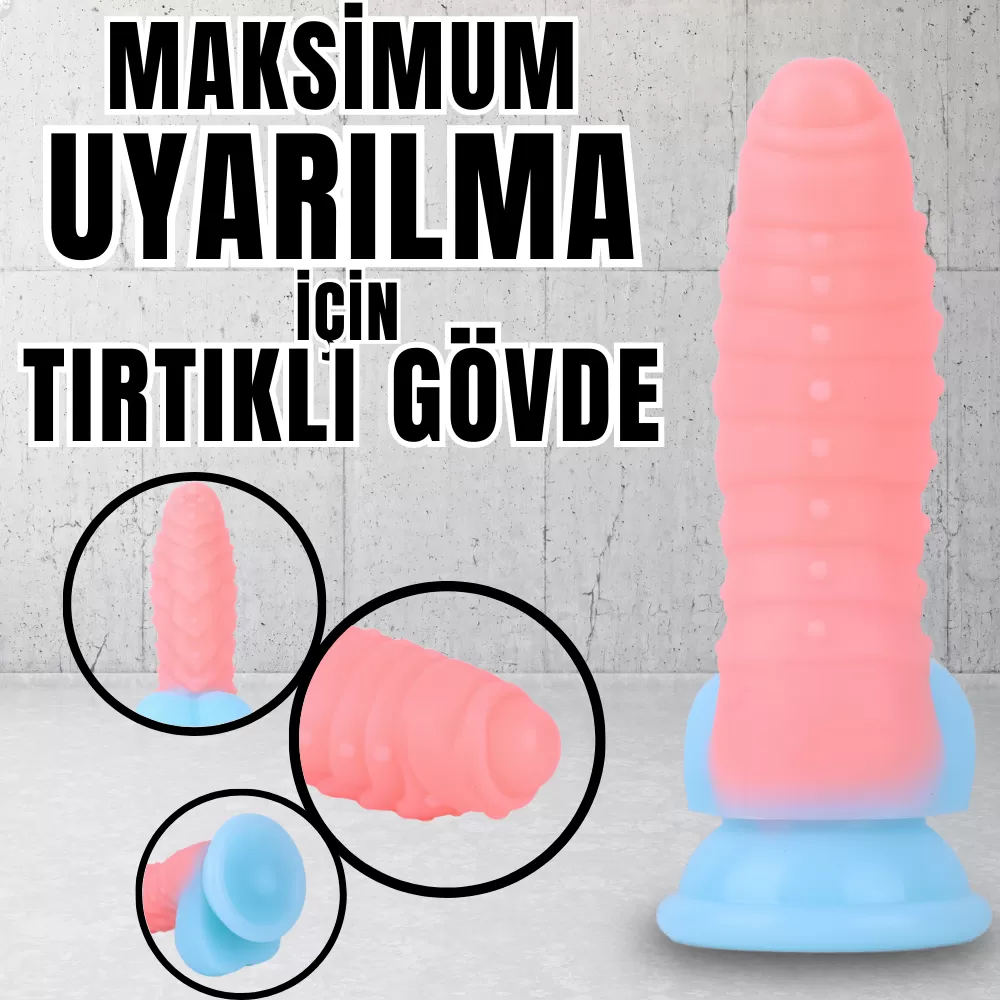 NEON ELITE Glow in the Dark - Karanlıkta Parlayan Tırtıklı Dildo Ultra Yumuşak Realistik Yapay Penis
