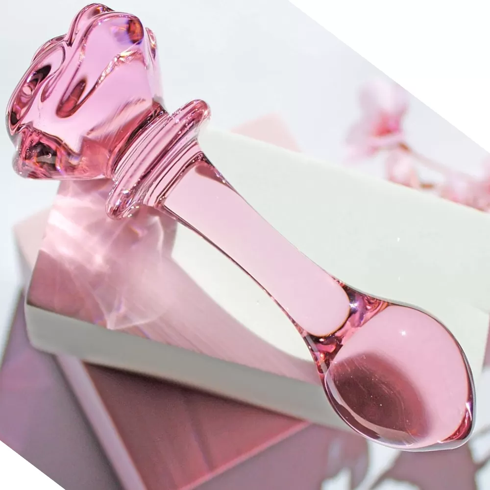 Pembe Kristal Cam Anal Plug Yapay Penis 14 CM