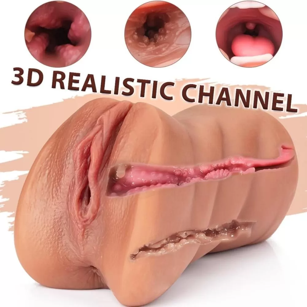 • Premium Masturbator Daria - Realistik Dokulu Oral Anal Vajinal 3 in 1 Titreşimli Suni Vajina