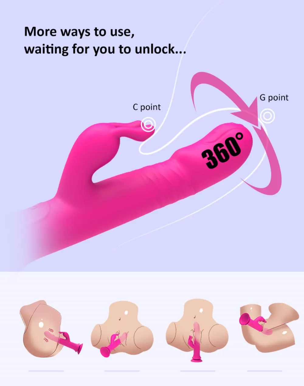 RAIN LOVE İleri Geri ve 360° Rotasyon Hareketli Su Geçirmez Vantuzlu Rabbit Vibratör