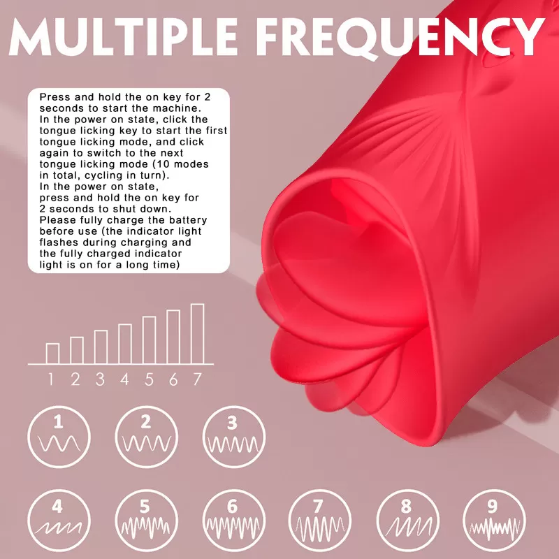 Çok işlevli, 9 farklı frekansta dil yalama hareketlerine sahip, kadınlara yönelik gül klitoris stimülatörümüz, hem yeni başlayanlar hem de uzmanlar için uygun, hassastan vahşiye kadar 9 yalama moduna sahiptir. Ayarlarla oynayıp mükemmel kombinasyonu bulduğunuzda, saf Cenneti bulacaksınız!
