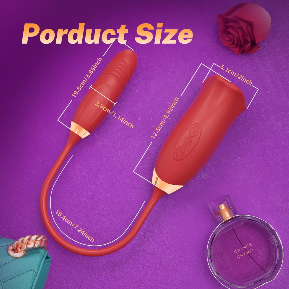 İleri geri hareketli yapay penisli 3'ü 1 arada oral seks vibrartörü, bu dudak hareketli dil vibratörü, aşağı yukarı 10 oral seks modu, 10 ileri geri hareketli mod ve 10 titreşim fonksiyonuyla birleştirilmiş 3'ü 1 arada gül oyuncağıdır.