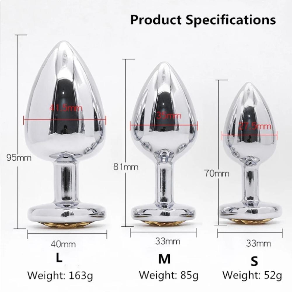 Paslanmaz Çelik Pembe Kalpli Mücevher Taşlı Pürüzsüz Silver Metal Anal Butt Plug, şık tasarımı ve sağlam yapısıyla anal keşiflerinize zarif bir dokunuş katacak özel bir üründür. Yüksek kaliteli paslanmaz çelik malzeme, uzun ömürlü, hijyenik ve dayanıklı kullanım sağlar. Ürünün ucundaki pembe kalp şeklindeki mücevher taşı, estetik açıdan hoş bir detay sunar ve anal oyunları daha keyifli hale getirir. Pürüzsüz silver metal yüzeyi, rahat bir kullanım deneyimi sunarken, kolayca temizlenebilir ve vücuda dosttur. Büyük boyutu, anal genişlemeyi ileri seviyeye taşımak isteyen kullanıcılar için mükemmel bir tercihtir.