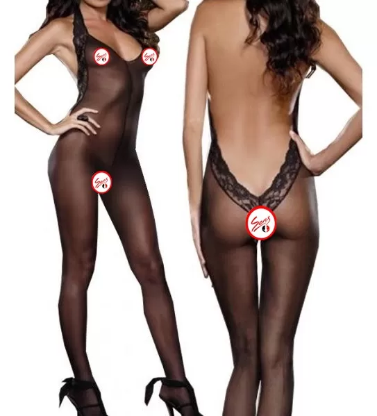 Sırt Dekolteli Dantel İşlemeli Özel Bölgesi Açık Vücut Çorabı
