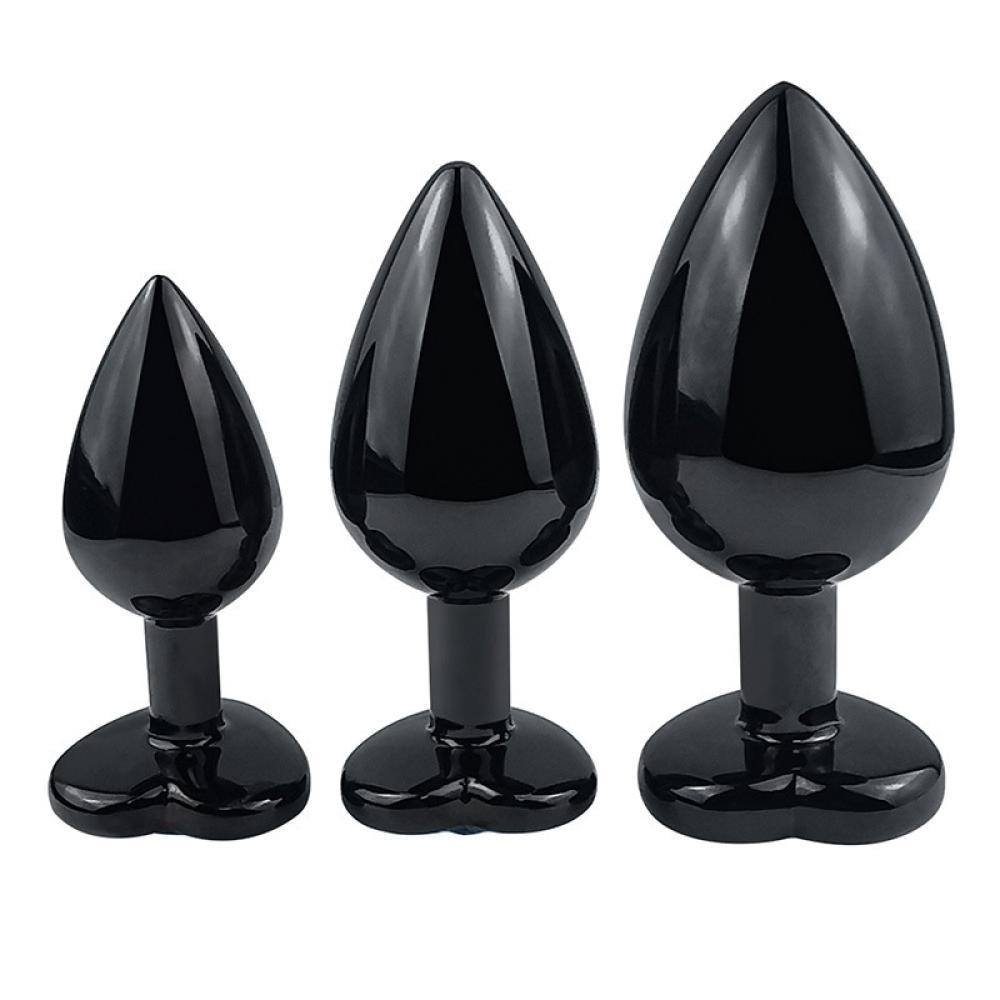 Paslanmaz Çelik Mor Kalpli Mücevher Taşlı Pürüzsüz Siyah Metal Anal Butt Plug - Orta Boy