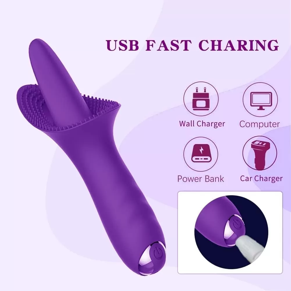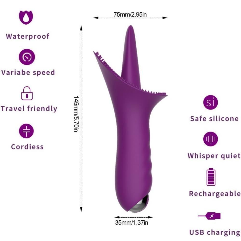 TONGUE Şarjlı Su Geçirmez Güçlü Titreşimli G-Spot ve Klitoris Uyarıcı Dil Vibratör - Mor