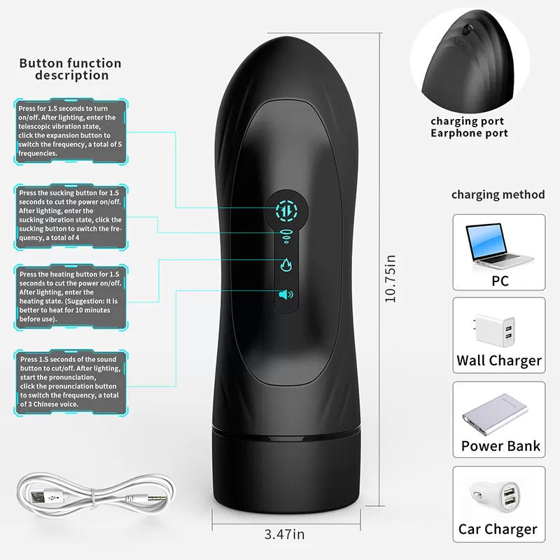 Erkeklere yönelik bu seks oyuncağı, paslanmaz çelik santrifüj pervane ve yüksek hızlı motorlu vibratörü ile vakum emme teknolojisinden oluşur. Tüm işlevler bağımsız olarak kontrol edilir, bunları aynı anda açabilir veya yalnızca işlevlerden birini kullanabilirsiniz.