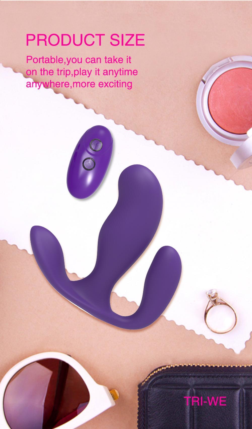 TRI-WE Kablosuz Kumandalı Manyetik Şarjlı 3 in 1 Giyilebilir Vibratör - Mor