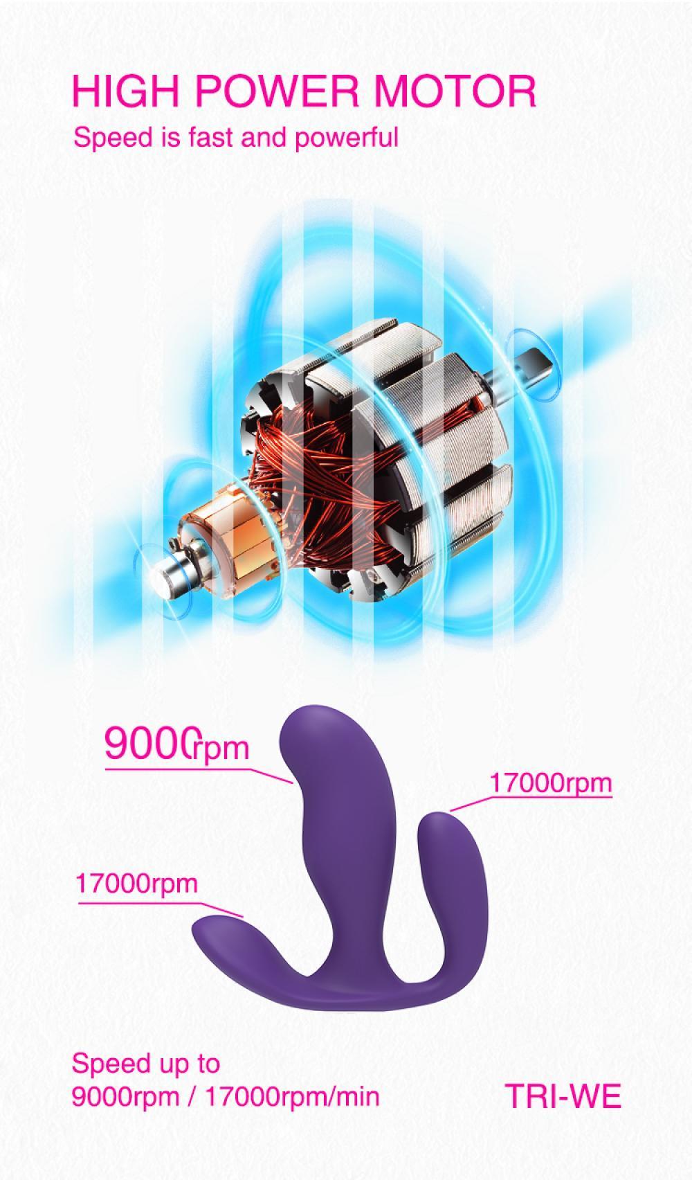 Klitoris ve anal uyarıcı titreşim motorları (17000 RPM/DK) aynı güç butonu, vajinal uyarıcı titreşim motoru (9000 RPM/DK) diğer güç butonu ile kontrol edilir.
