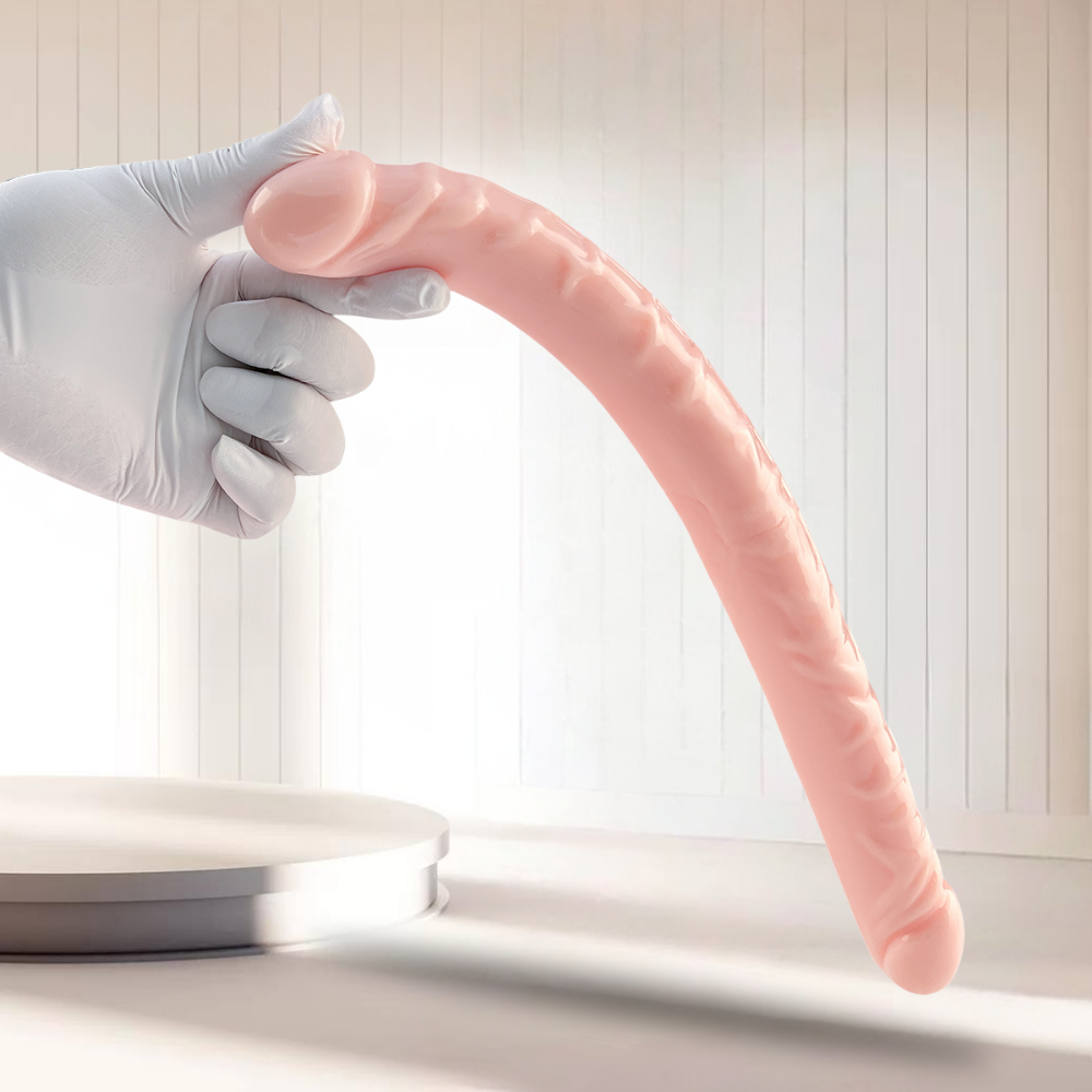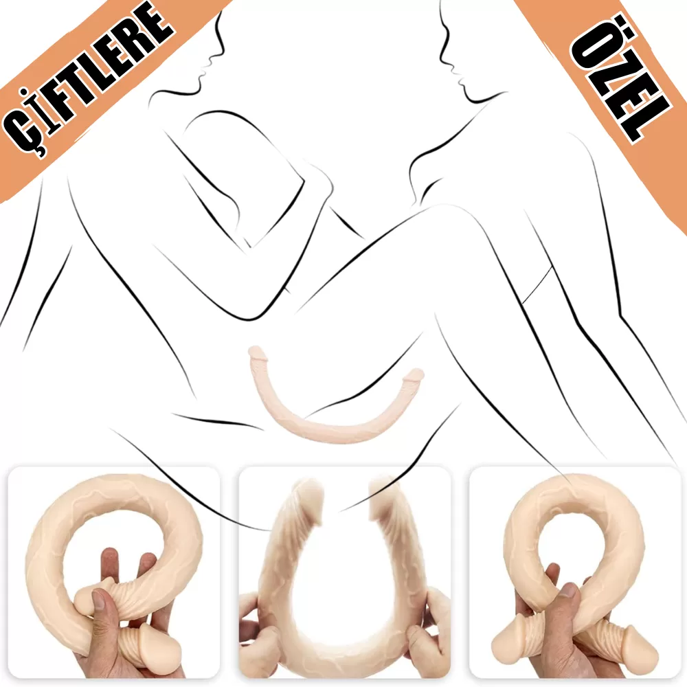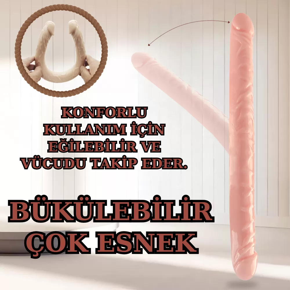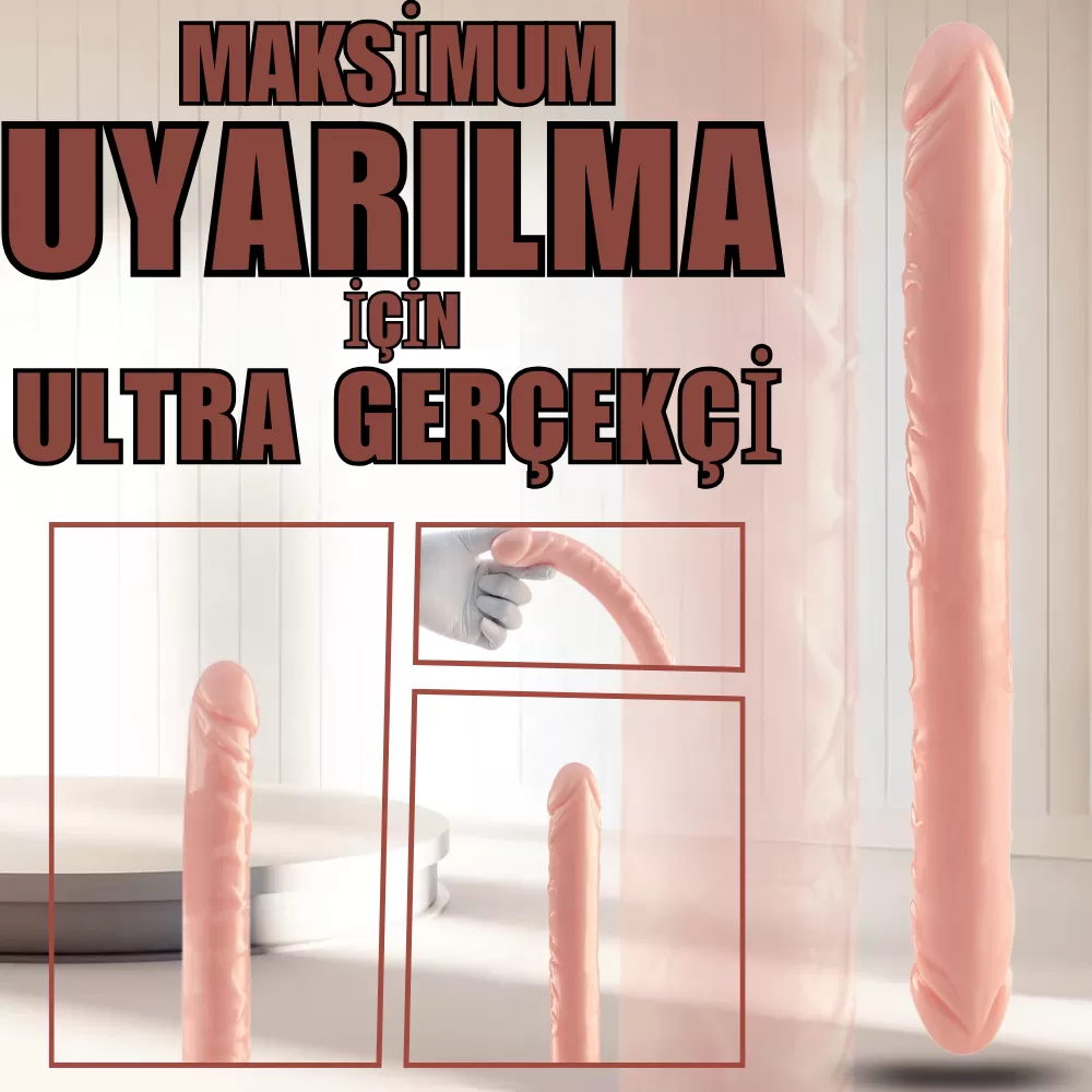 UNIQUE Realistik Dokuda Çift Taraflı Dildo Çift Uçlu Gerçekçi Yapay Penis 34 CM