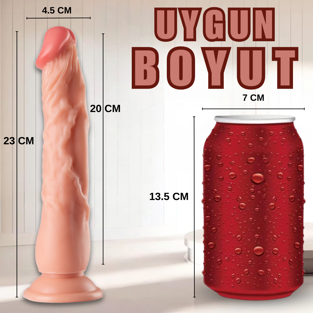 UNIQUE Realistik Dokuda Dildo Vantuzlu Damarlı Gerçekçi Yapay Penis 23 CM
