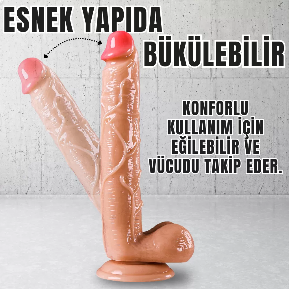 UNIQUE XL Realistik Dokuda Damarlı Dildo Vantuzlu Büyük Boy Gerçekçi Yapay Penis 27 CM
