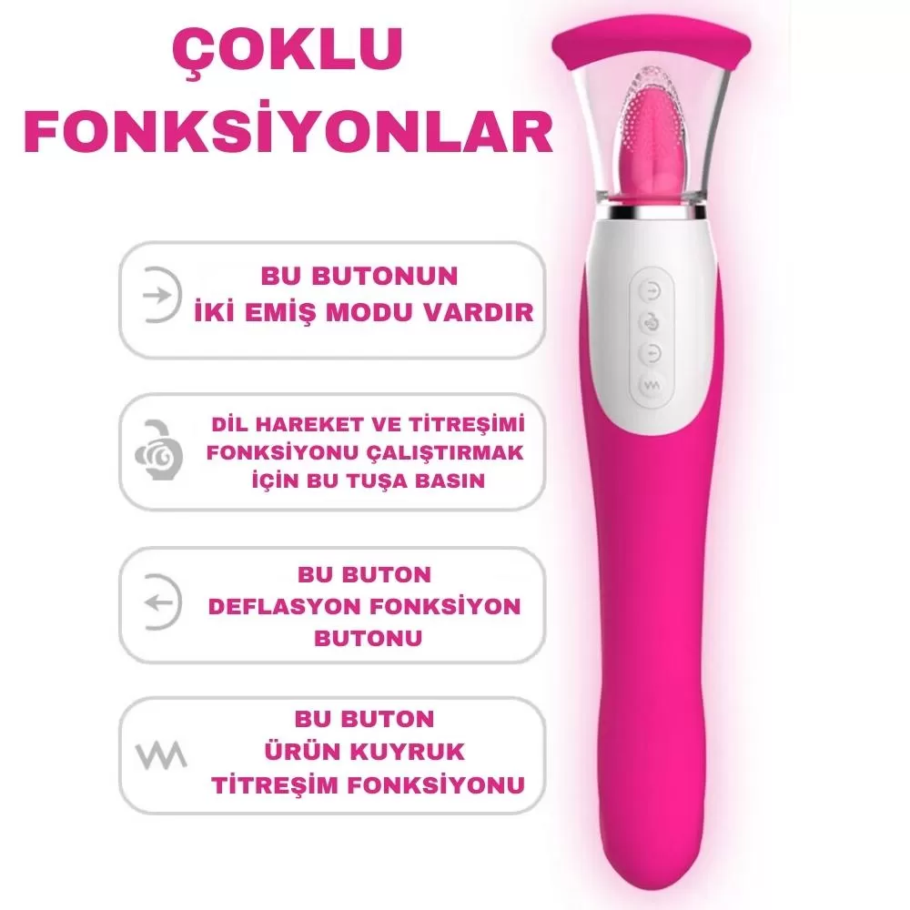 WISTONE Ultra Güçlü Emiş ve Titreşimli Dil Hareketli Orgazm Masaj Vibratör - Pembe