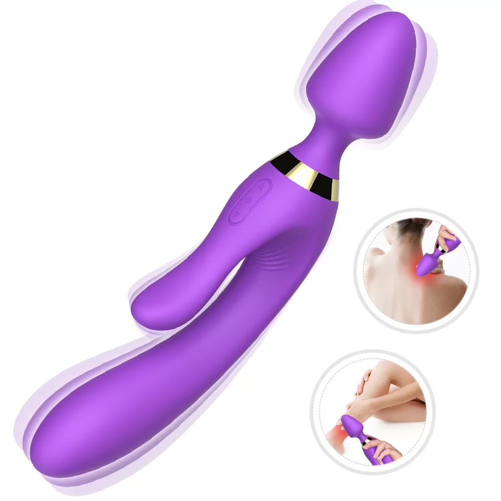 WOWYES Manyetik Şarjlı Su Geçirmez Wand Massager 3 in 1 Dildo Vibratör - Mor